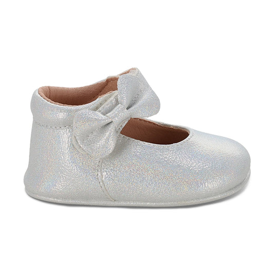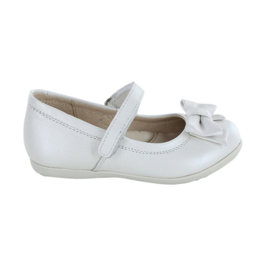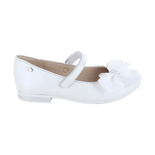 Balerina Coqueta para niña en piel perla con moño decorativo