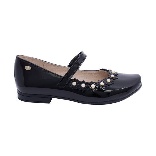 Balerina Coqueta para niña en sintético negro Miranda con flores decorativas