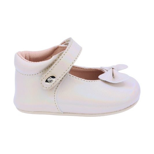 Balerina Coqueta para niña en piel perla Panky con moño decorativo
