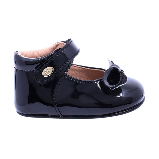 Zapatilla Coqueta para niña de charol negro Miranda con moño decorativo