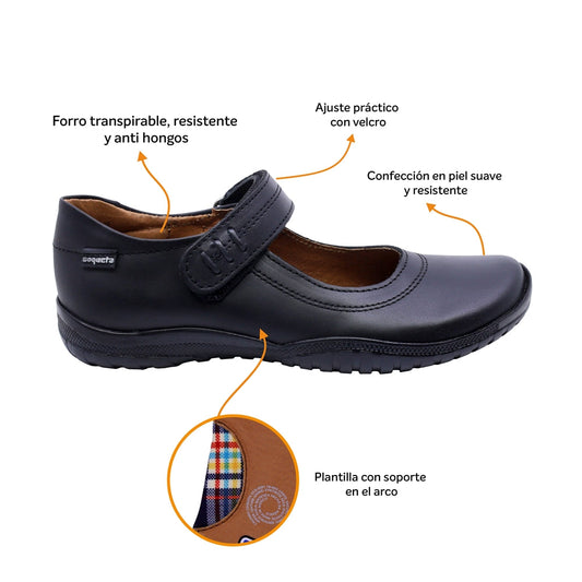 Zapato Escolar Coqueta para niña en piel negro Georgina con tira de contacto