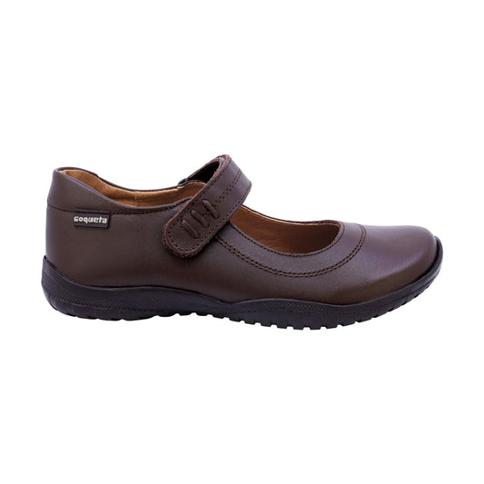 Zapato Escolar Coqueta para niña en piel café Georgina con tira de contacto