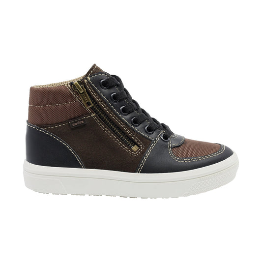 • Tenis Audaz para niño en piel  café Boxer con cierre decorativo