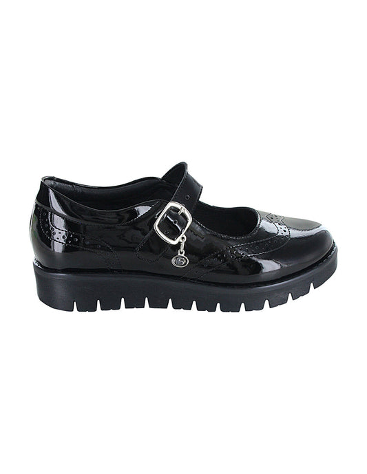 Zapato Escolar Coqueta para niña en charol negro Florence con suela dentada