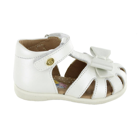 Sandalia Coqueta para niña en piel perla Vanessa con moño decorativo