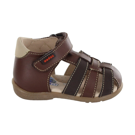 Sandalia Audaz para niño en piel café Titán con tira de contacto