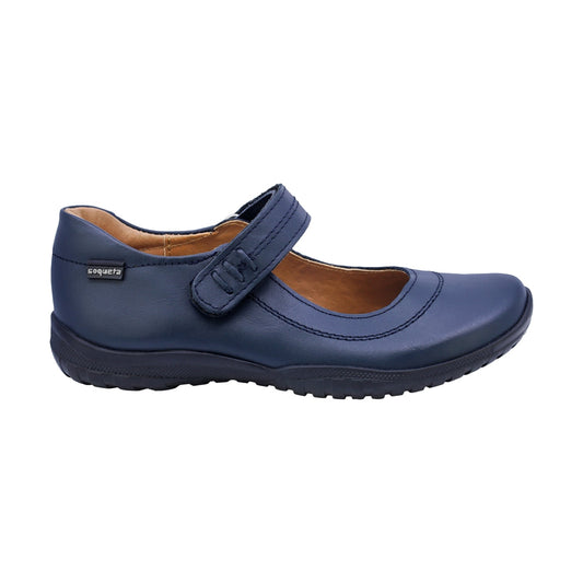 Zapato Escolar Coqueta para niña en piel azul Georgina con tira de contacto