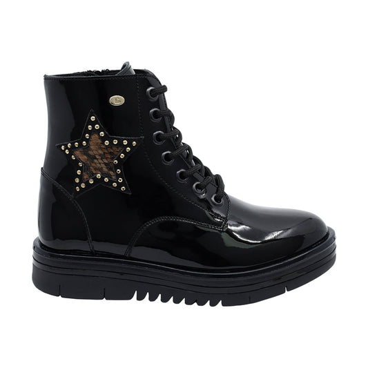 Botín Coqueta para niña de Charol Negro Nora con estrella en el lateral