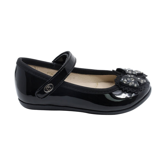 Zapato Coqueta para niña en charol negro Pampa con moño decorativo