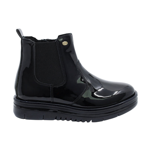 Bota Coqueta para niña de charol negro Nora con elástico lateral