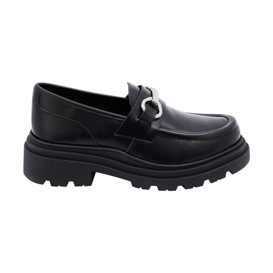 Mocasín Coqueta para niña en piel negro Jazz con adorno metálico