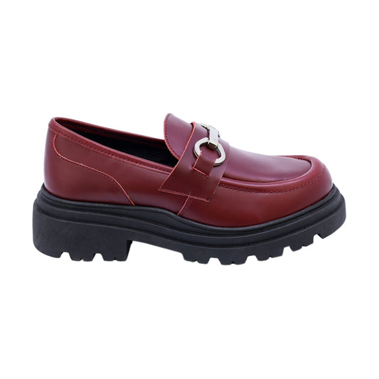 Mocasín Coqueta para niña en piel vino Jazz con adorno metálico