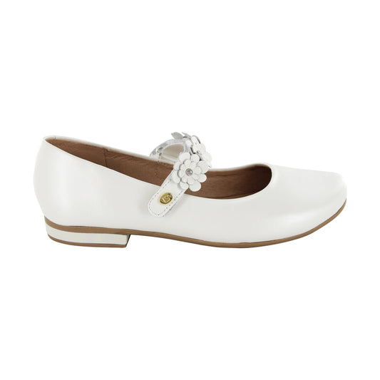 Zapatilla Coqueta para niña de piel perla Miranda con flores decorativas