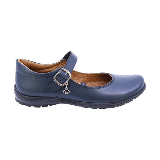 Zapato escolar Coqueta para niña de piel azul marino Danna con hebilla