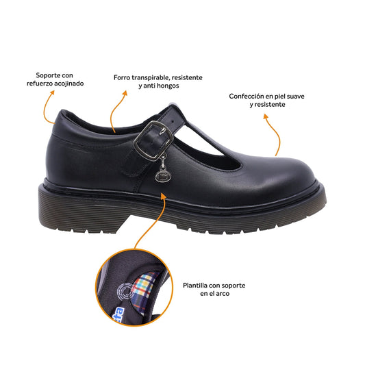 Zapato escolar Coqueta para niña de piel negro Martín con diseño tipo T