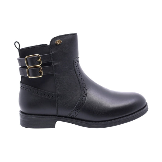 Bota Coqueta para niña en piel negro Canuta con doble hebilla