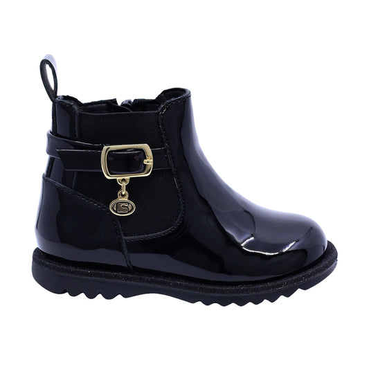 Bota Coqueta para niña en charol negro Rondy con hebilla decorativa