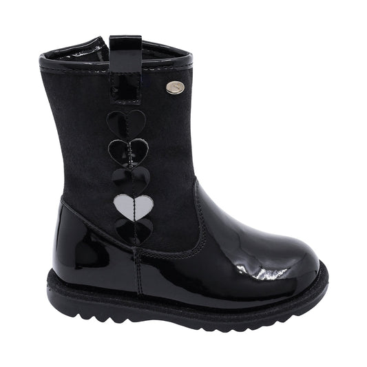 Bota Coqueta para niña en charol negro Rondy con corazones