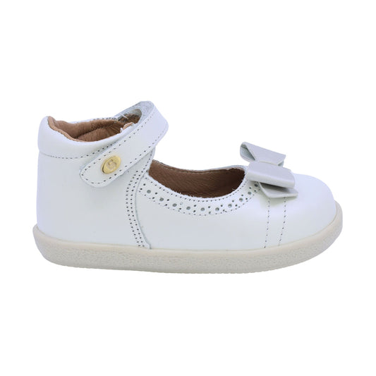 Balerina Coqueta para niña en piel perla con moño decorativo