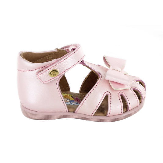 Sandalia Coqueta para niña en piel rosa Vanessa con moño decorativo