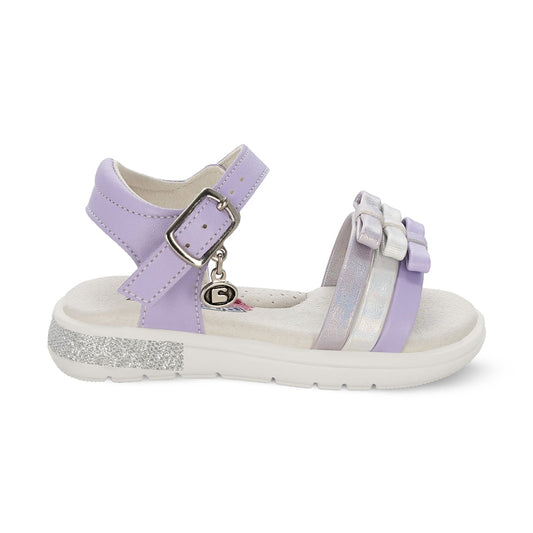 Sandalia Coqueta para niña en sintético lila Sofi con detalles de moños.