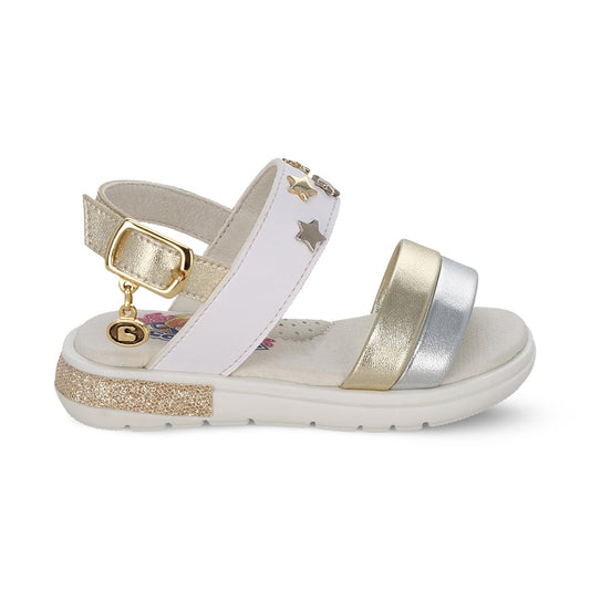 Sandalia Coqueta para niña en sintético oro Sofi con detalles de estrellas.