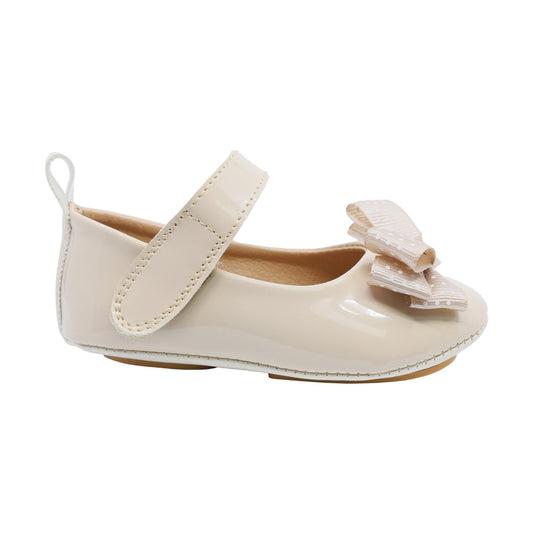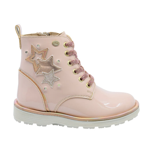 Botín Coqueta para niña Charol Beige Elvis con estrellas decorativas