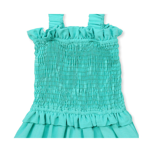 Vestido Coqueta para niña de algodón en verde con diseño fruncido