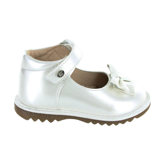 Bota Coqueta para niña en charol perla Rondy con moño decorativo