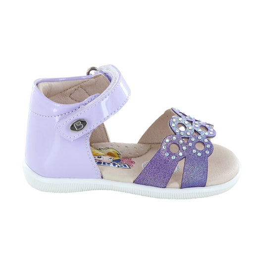 Sandalia Coqueta para niña en charol lila Vanessa con detalles de brillo