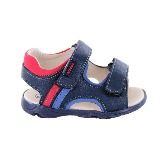 Sandalia Audaz para niño en piel azul Patricio con doble tira de contacto