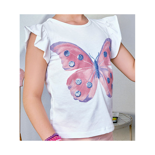 Conjunto Coqueta para niña de algodón en blanco con estampado de mariposa