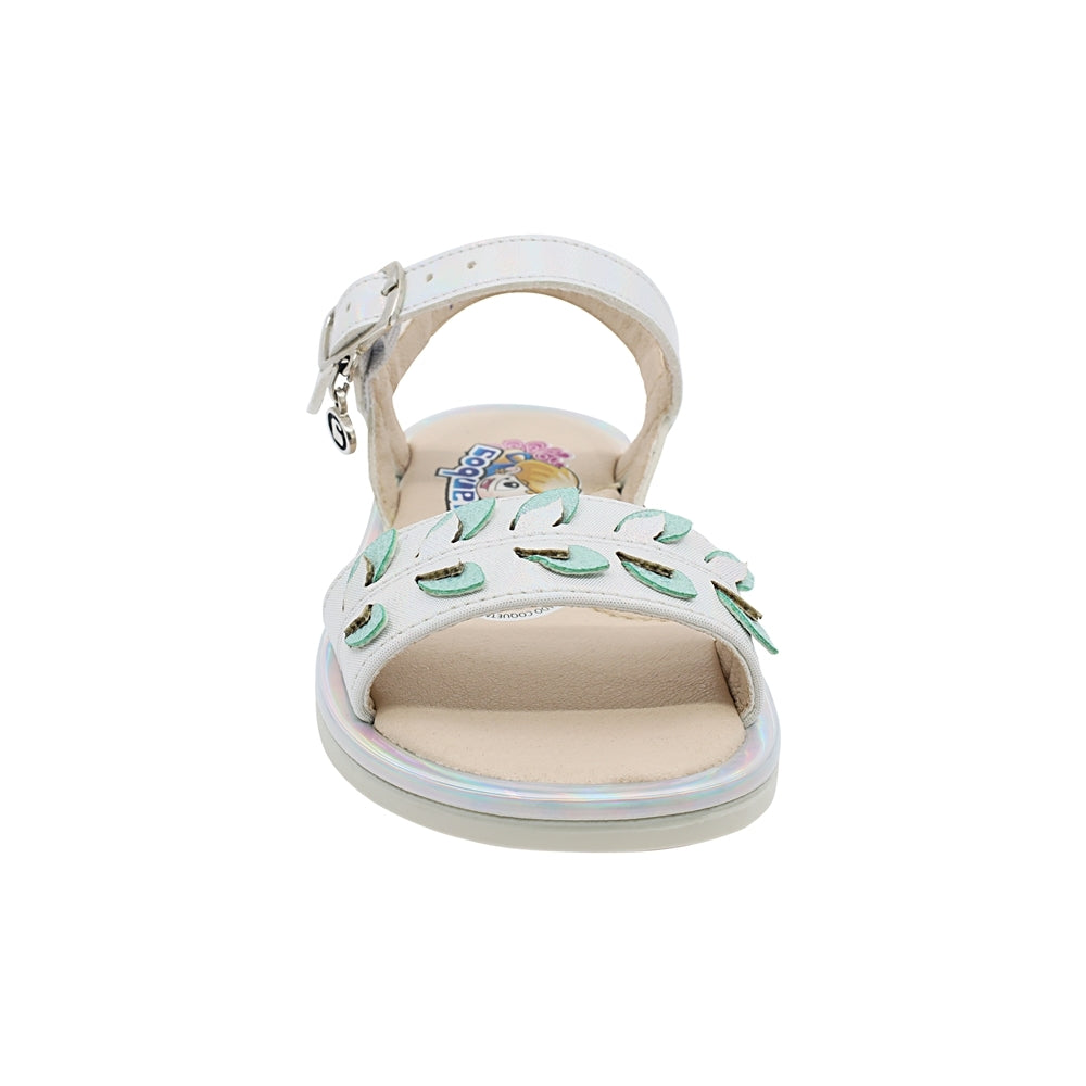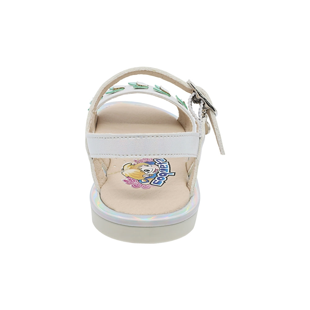 Las sandalias Coqueta para niña en sintético perla combinan frescura y estilo. Su suela delgada con acabado tornasol brinda comodidad, mientras que las tiras troqueladas con detalles en verde añaden un toque único. Su ajuste con hebilla asegura un ajuste cómodo y seguro.