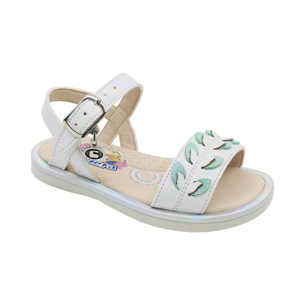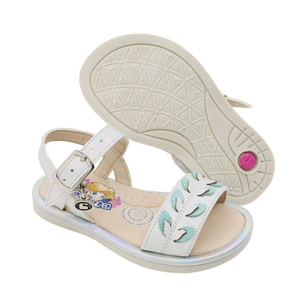 Sandalia Coqueta para niña en sintético perla tetris con detalles troquelados
