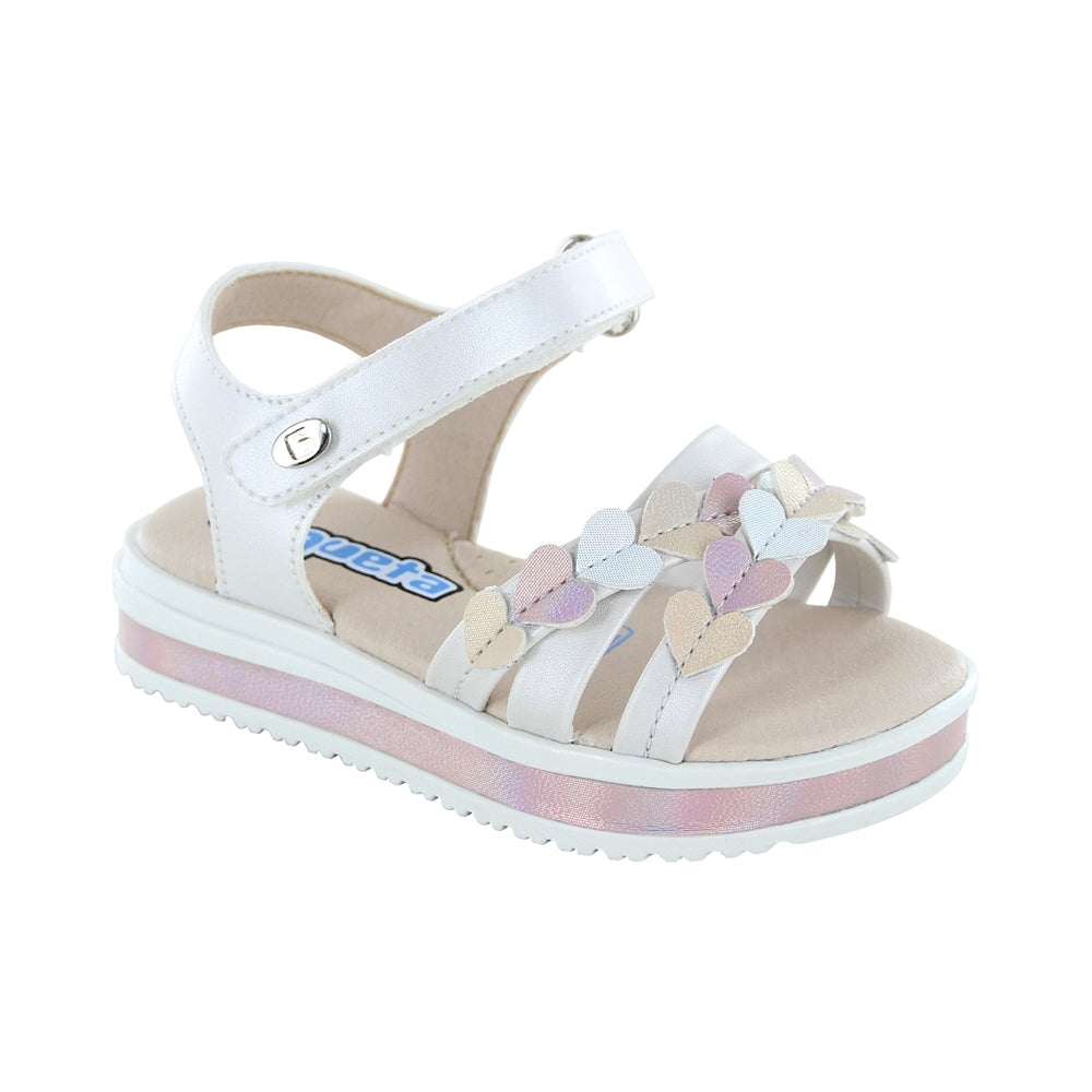 Sandalia Coqueta para niña en sintético perla Casandra con diseño de corazones.