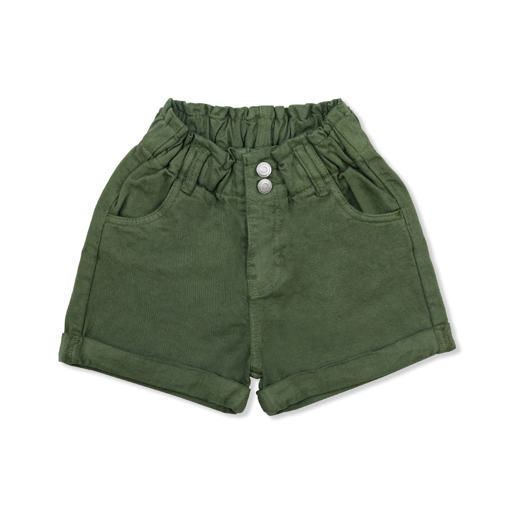 Short Coqueta para niña en algodón verde con pretina elástica
