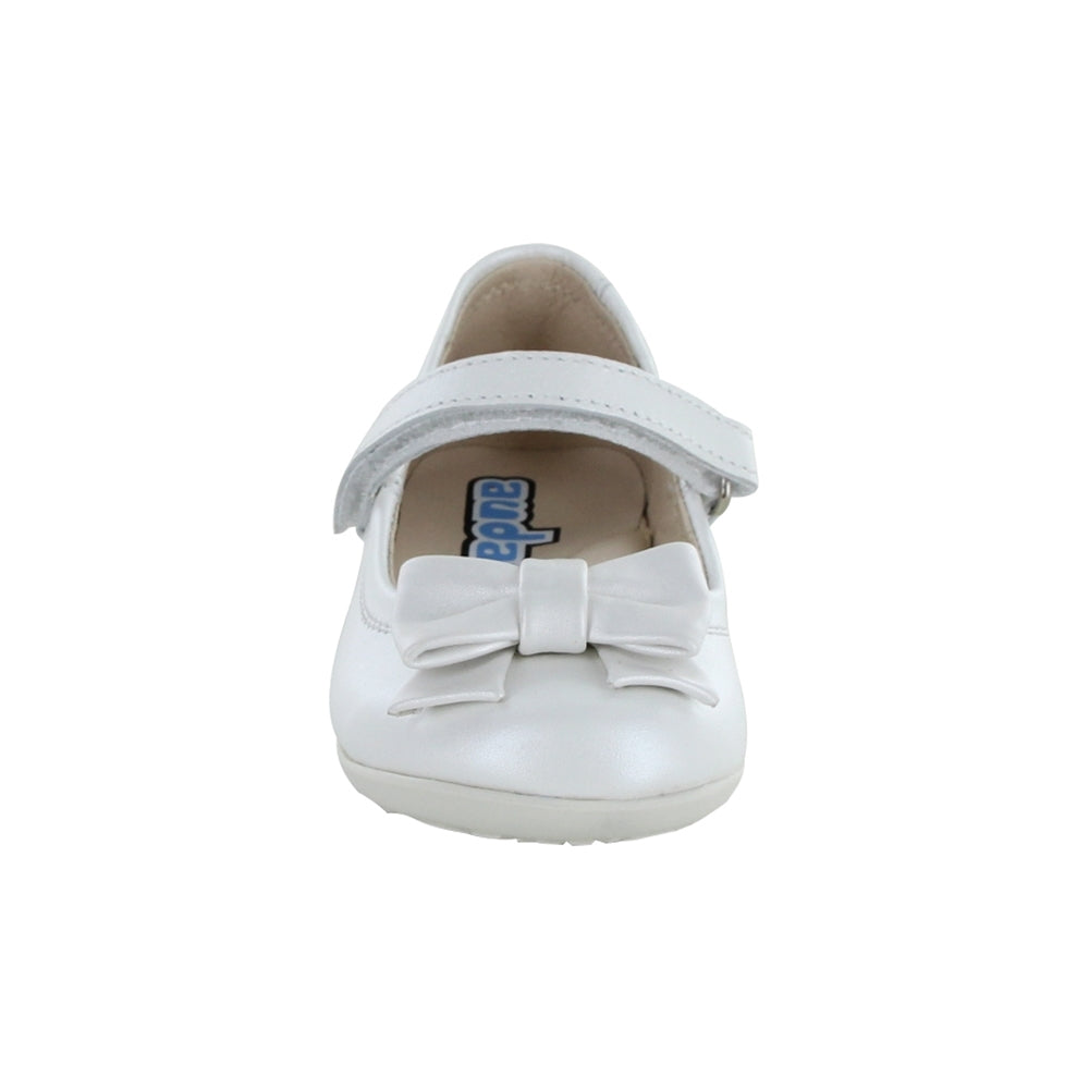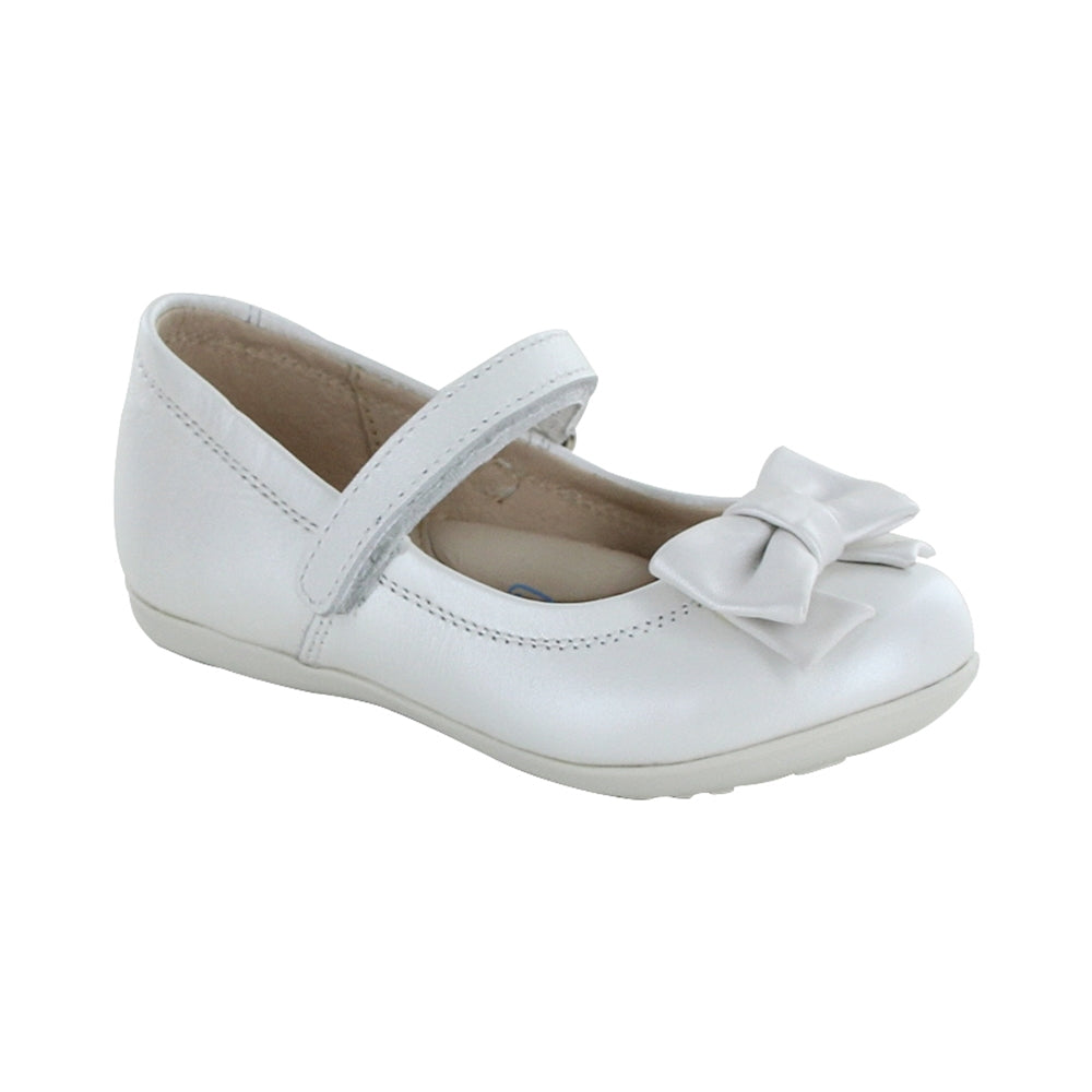 Balerina Coqueta para niña en piel perla Elisa con tira de contacto.