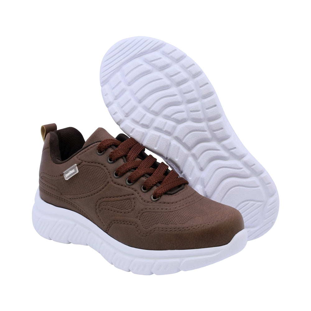 Tenis Audaz para niño en sintético café Balu con suela blanca