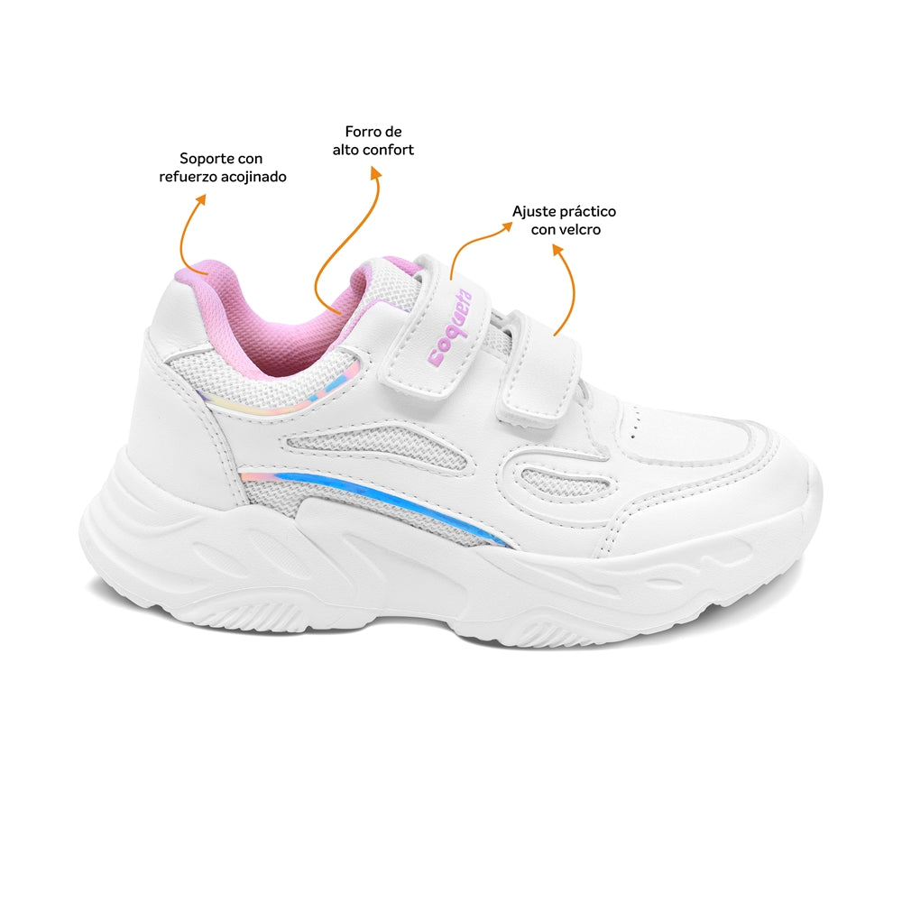 Tenis escolar Coqueta para niña sintético blanco alien con doble tira de contacto