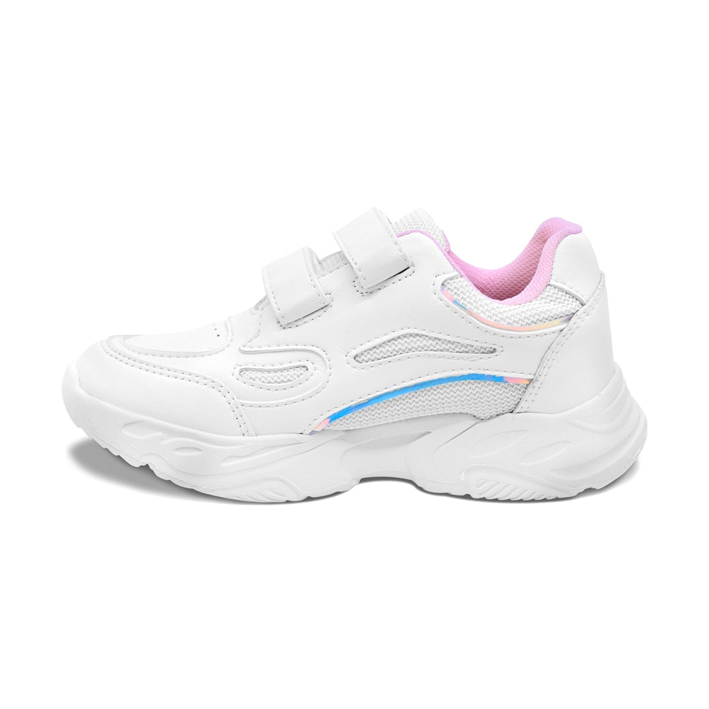 Luce su estilo único con estos tenis escolares Coqueta para niña, elaborados en material sintético color blanco, con doble tira de contacto y detalles iridiscentes. Ideales para combinar comodidad con un estilo encantador.