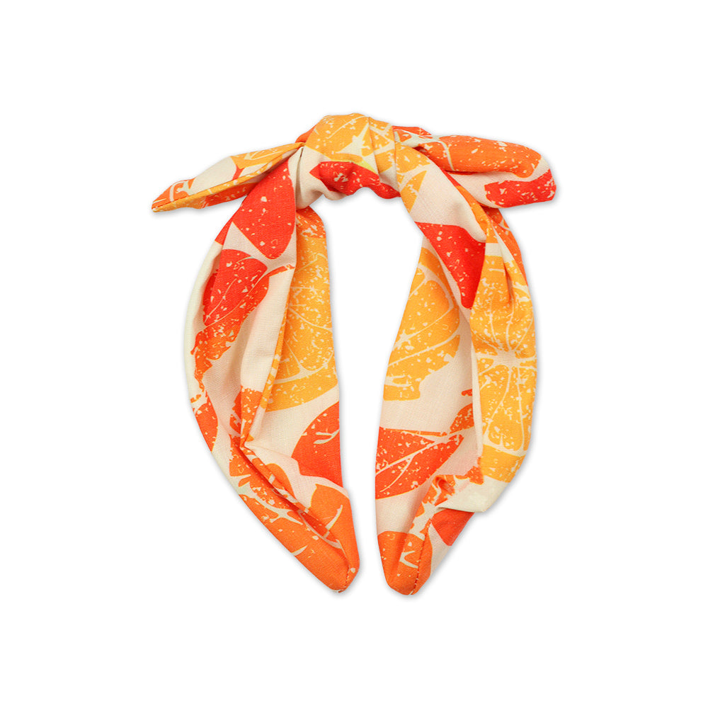 Vestido Coqueta para niña en algodón naranja con estampado frutal y diadema