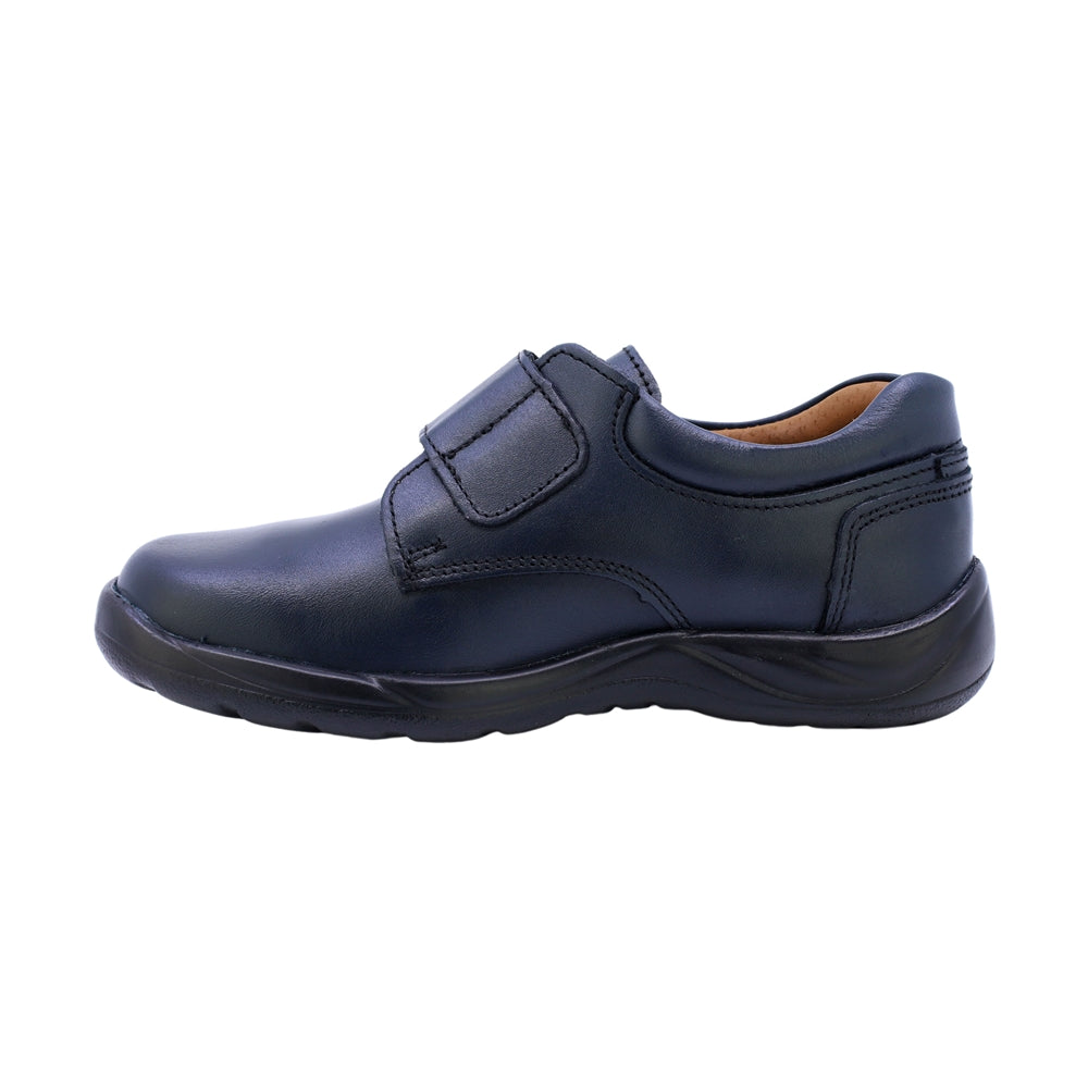 Zapato Escolar Audaz para niño en piel azul marino Tadeo con tira de contacto