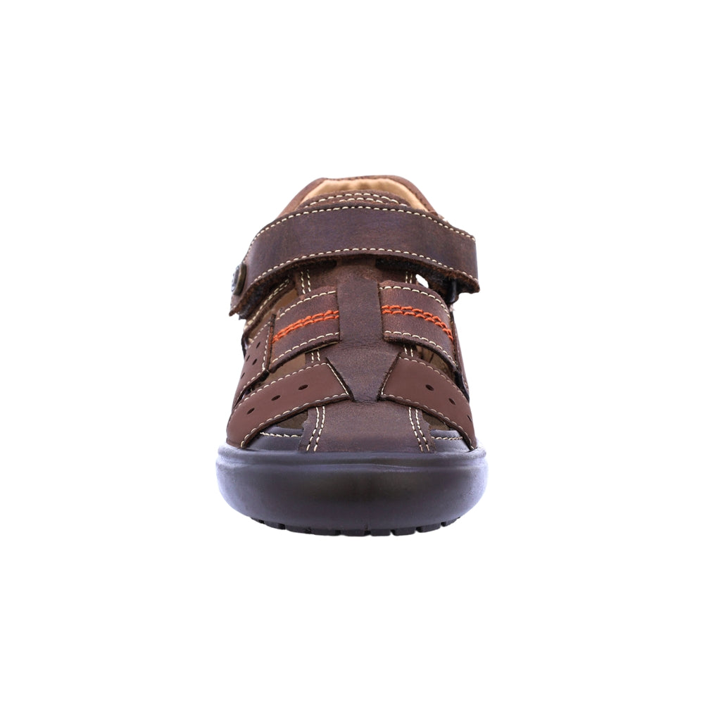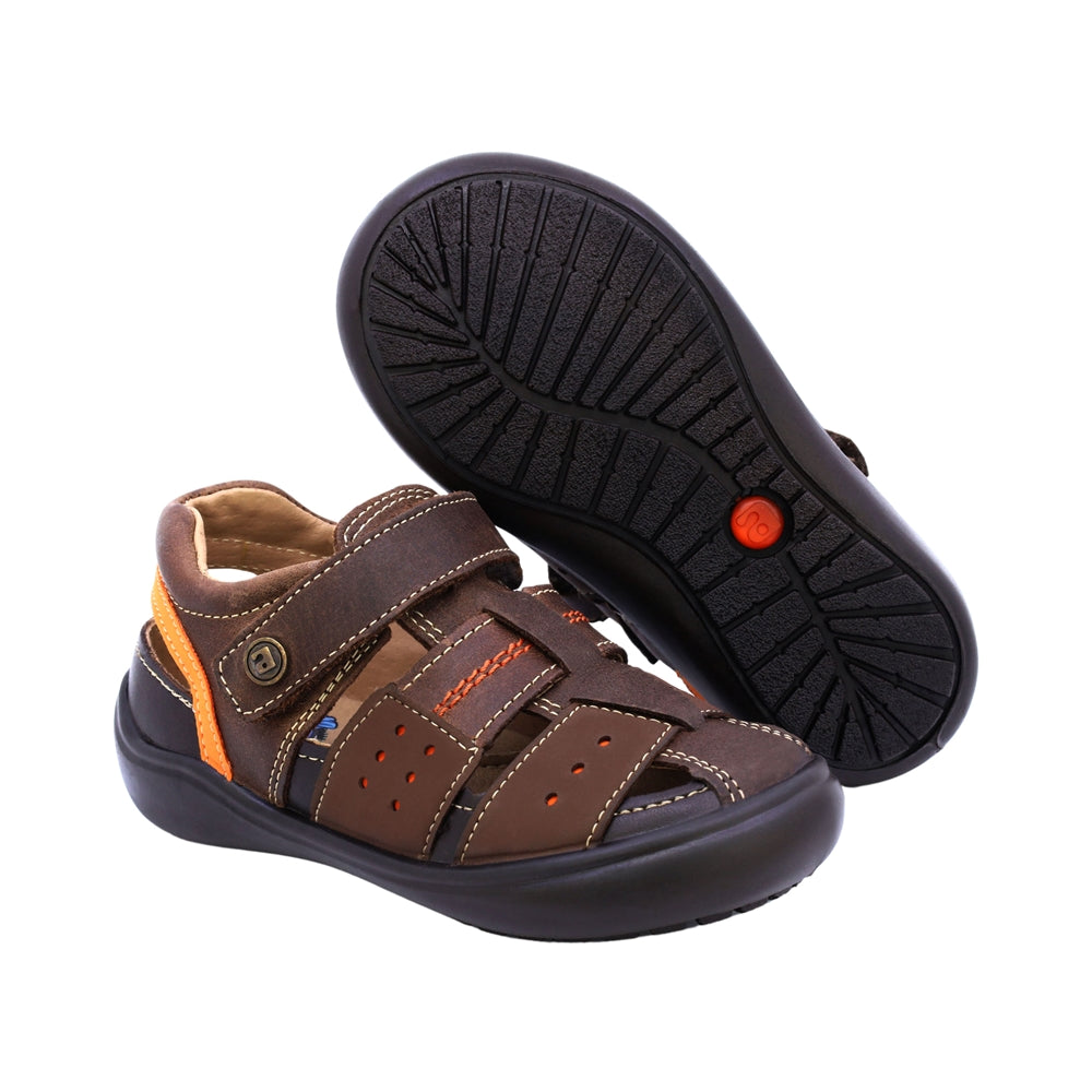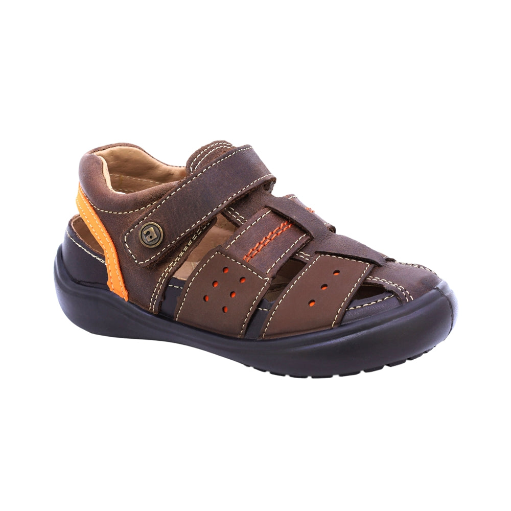 Sandalia Audaz para niño en piel café Castor con tira de contacto