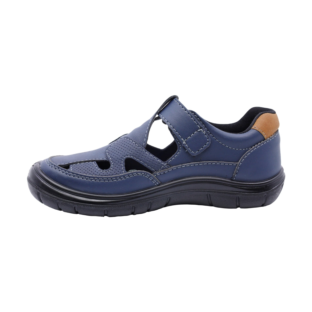 Sandalia Audaz para niño en sintético azul con diseño calado y detalles perforados. El ajuste con tira de contacto permite calzar con facilidad, mientras que la suela antiderrapante ofrece tracción y estabilidad. Perfectas para días activos y frescos.
