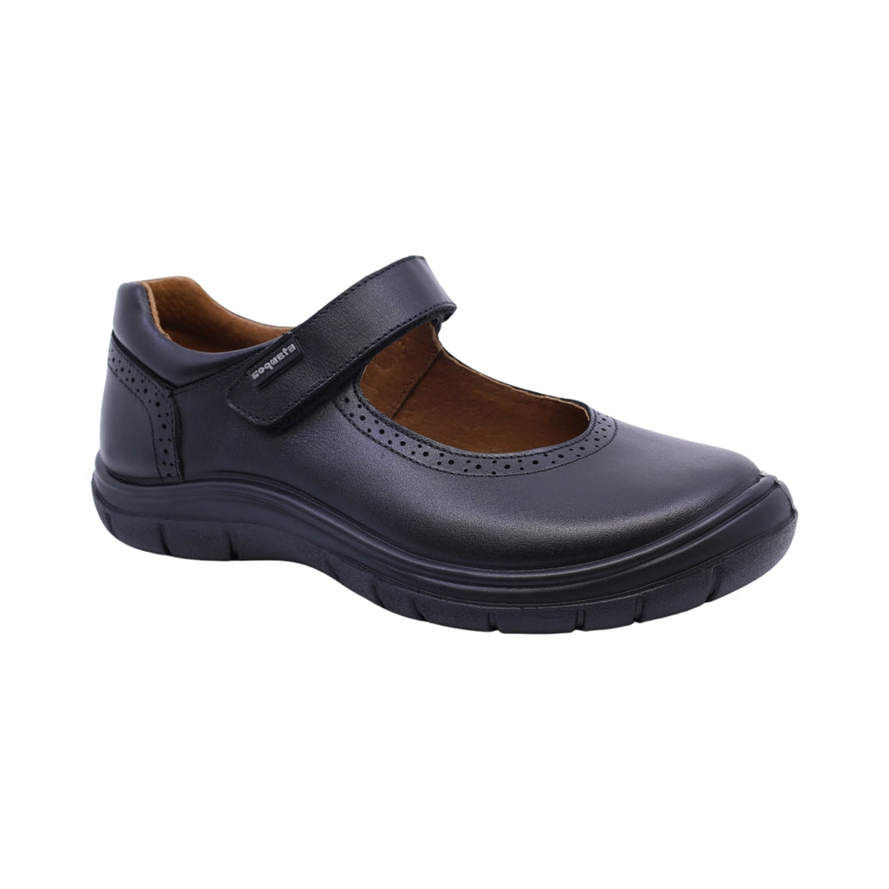 Zapato escolar Coqueta para niña de piel negro Monkey con perforado decorativo