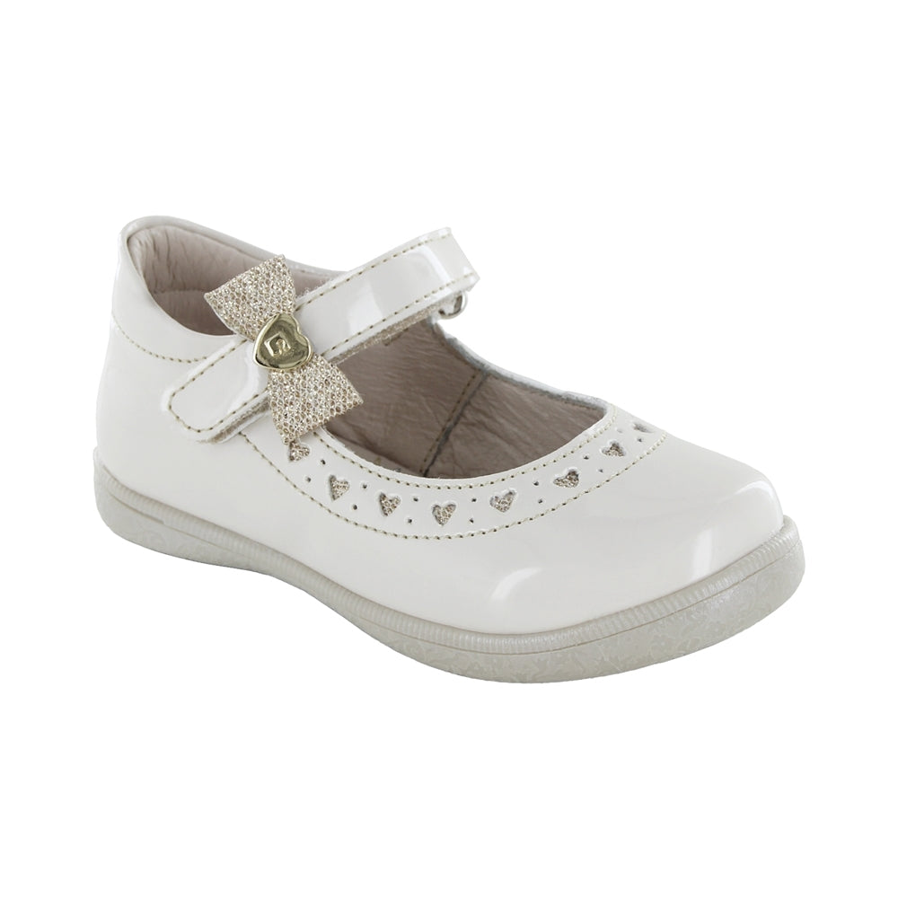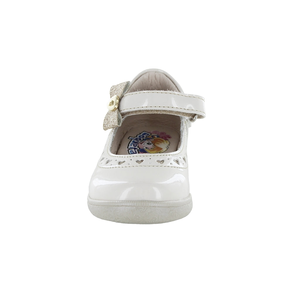 Zapato Coqueta para niña en charol beige Naty con moño decorativo