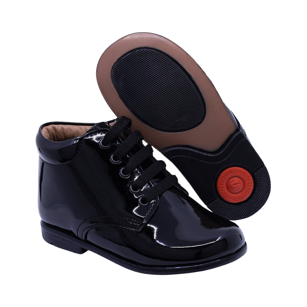 Botita Audaz para niño de charol negro Tomy con agujetas