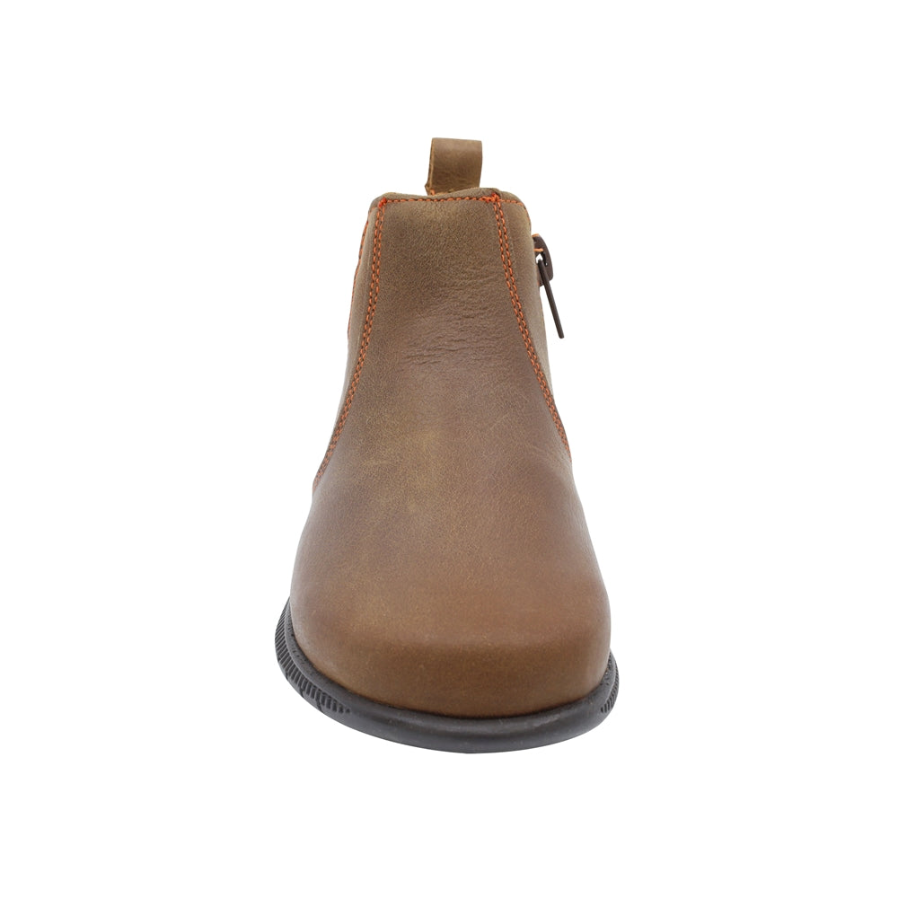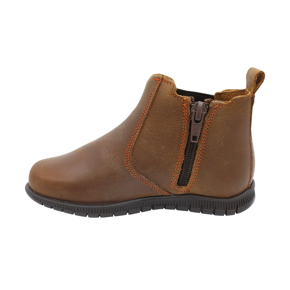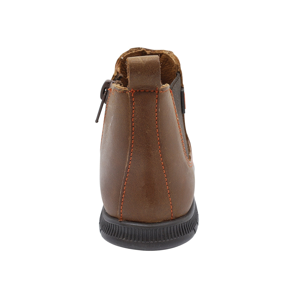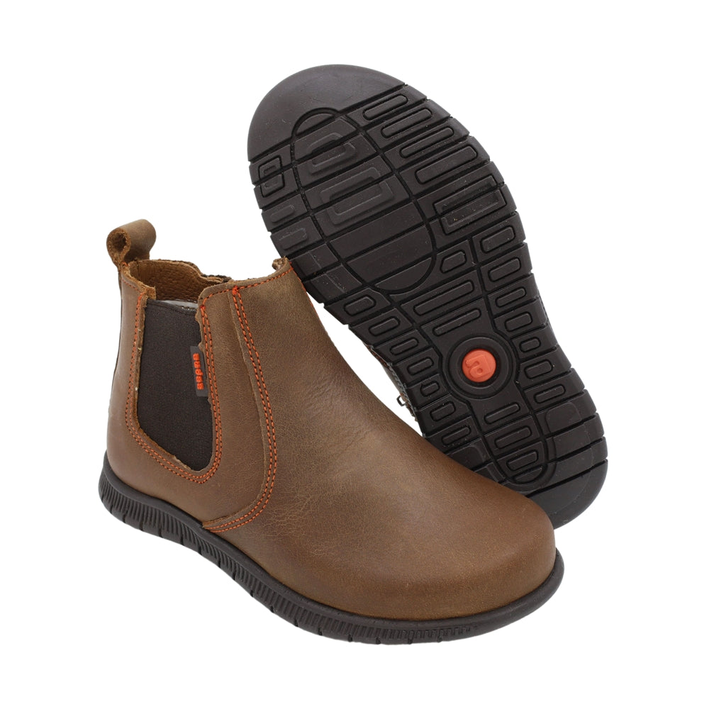 Comodidad y resistencia en esta bota Audaz para niño, elaborada en corte piel café con laterales elásticos y diseño tipo botín. Fácil de poner y quitar, ideal para uso diario con gran estilo y seguridad.