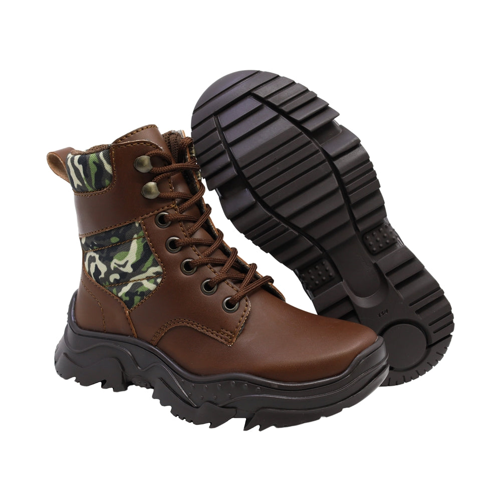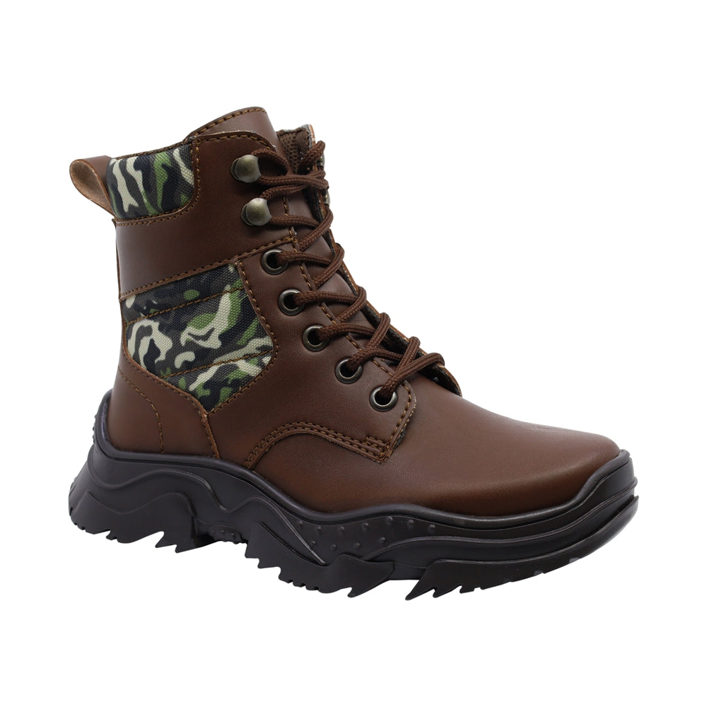 Bota Audaz para niño en sintético café claro Winko con estampado camuflaje