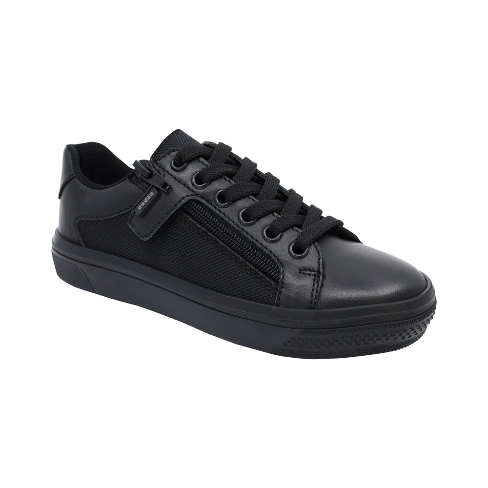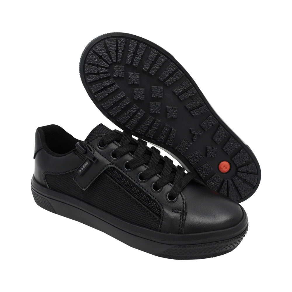 Tenis casual en negro con con cierre decorativo, confeccionados en de piel. con agujeta y una suela que ofrece un confort eficaz, son ideales para fiestas familiares y actividades diarias. Perfectos para que tu pequeño luzca estiloso y cómodo.
